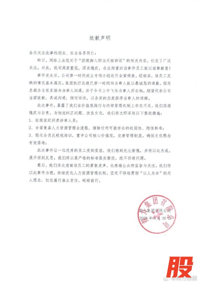 得力就辞退跛脚员工致歉得力就辞退跛脚员工致歉