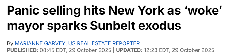 许多房产持有人已经认定,来自皇后区、年仅34岁的进步派议员佐赫兰·曼达尼(Zohran Mamdani)几乎板上钉钉要赢得市长宝座,而他们的应对方式是:离开纽约。