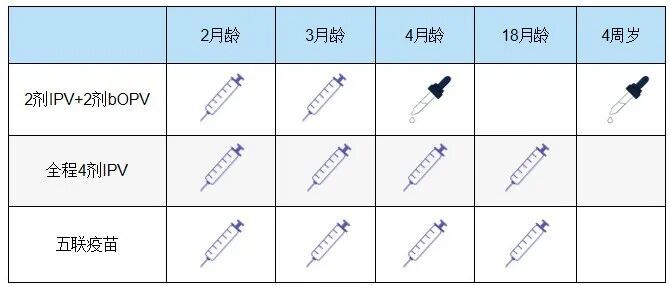 目前,脊灰疫苗接种主要有三种方案: